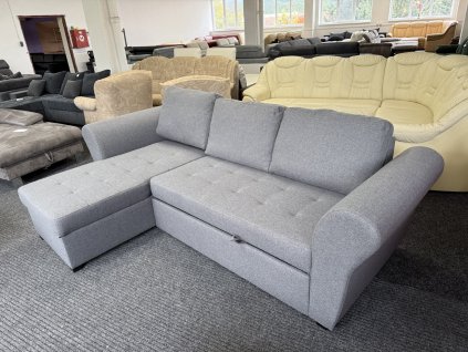 Sedací souprava rohová, rozkládací, s úložným prostorem, látková, celočalouněná, šedá –...