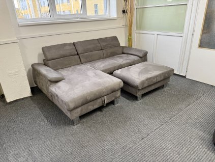 Rohová sedací souprava s taburetem, látková, celočalouněná, nepoužitáSedací souprava v šedé...