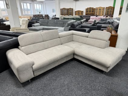 Sedací souprava rohová, elektricky rozkládací, s polohovacími opěrkami hlavy a velkým úložným...