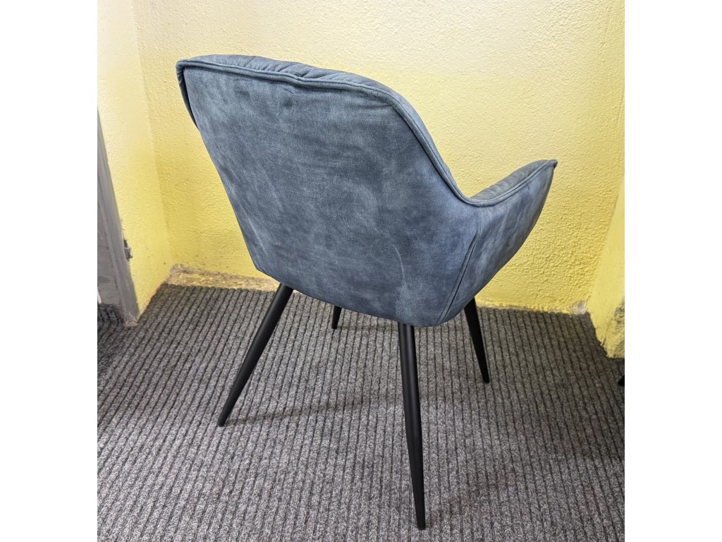 Celočalouněné jídelní křesílko v modré barvě. Toto křesílko je navrženo s důrazem na pohodlí a styl, což zaručuje nejen estetický vzhled, ale také komfortní sezení pro každodenní použití.