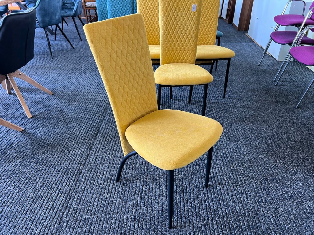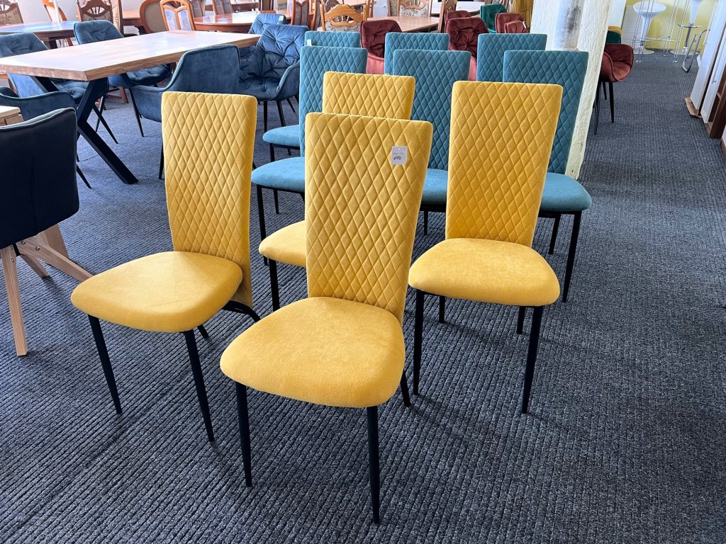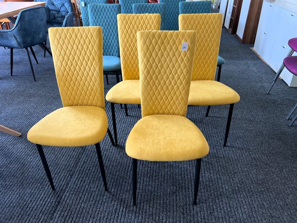 Sada 4 jídelních židlí – celočalouněné – žlutá barva – NEPOUŽITÉ