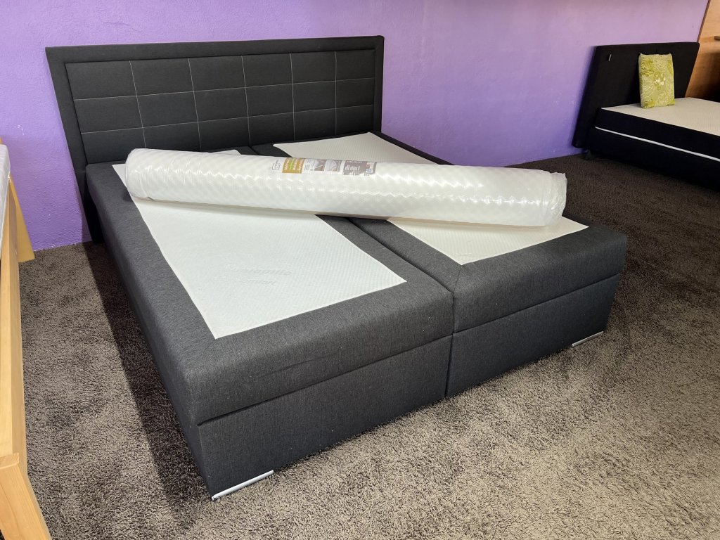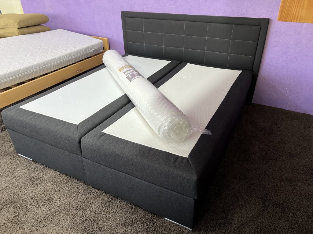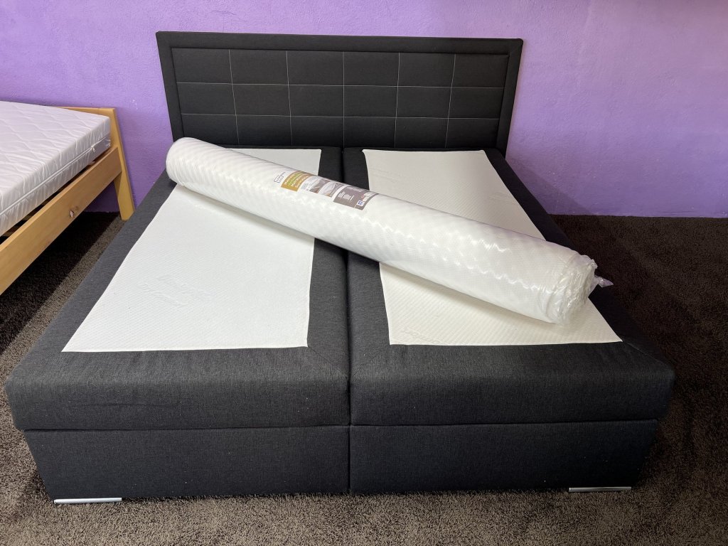 Čalouněná manželská postel s matrací - NEPOUŽITÁ