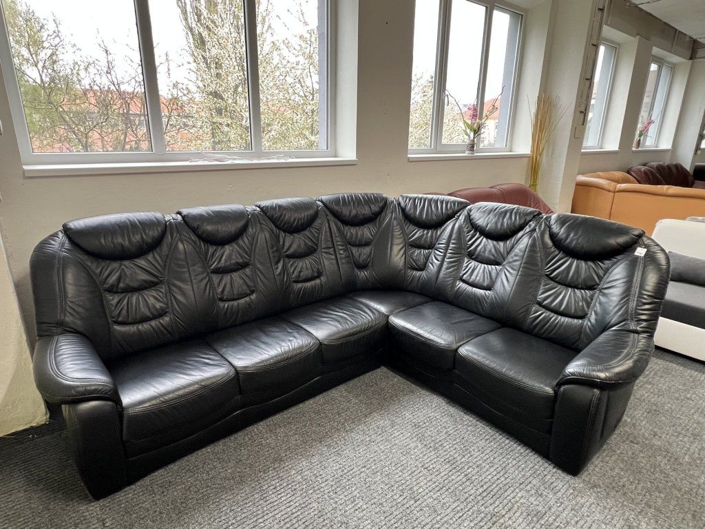 Rohová sedací souprava v koženém provedení vhodná pro běžné využití v obývacím prostoru.