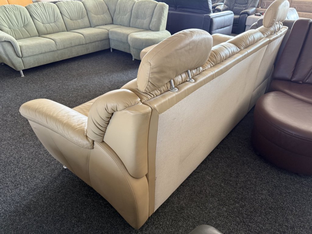 Sedačka je provedena v béžové barvě. Opěradla jsou členěna do samostatných segmentů s prošíváním. Součástí jsou výškově nastavitelné opěrky hlavy. Sedačka stojí na kovových nožkách.