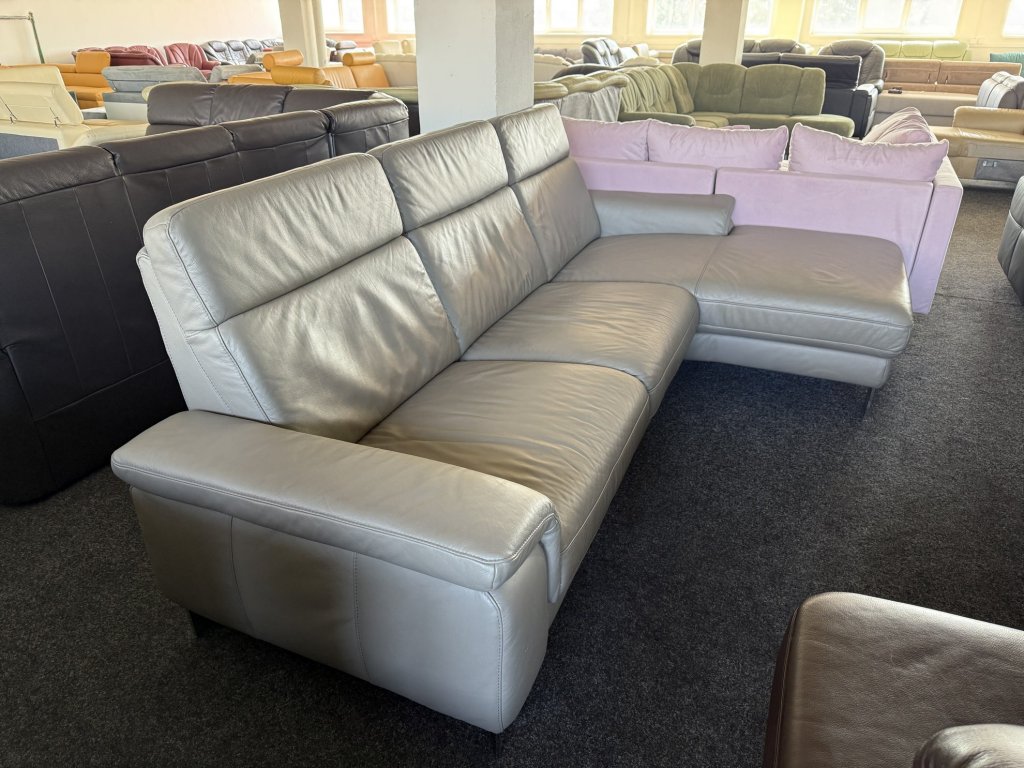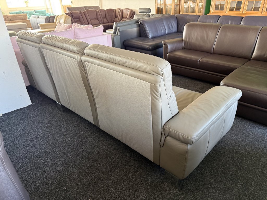 Rohová kožená sedací souprava v levém provedení, určena k umístění ke stěně. Vhodná do obývacího prostoru.