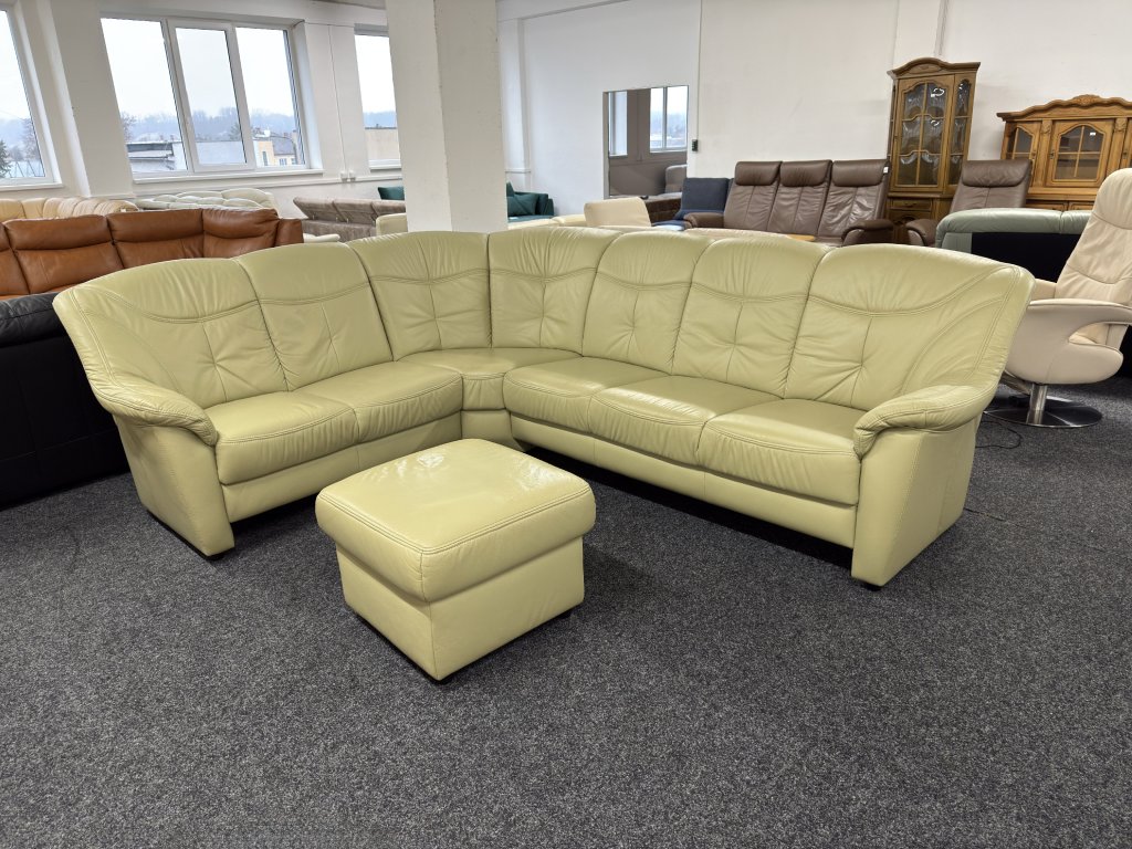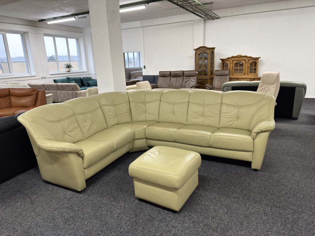 Rohová sedací souprava s taburetem – zánovní (EV 5974)