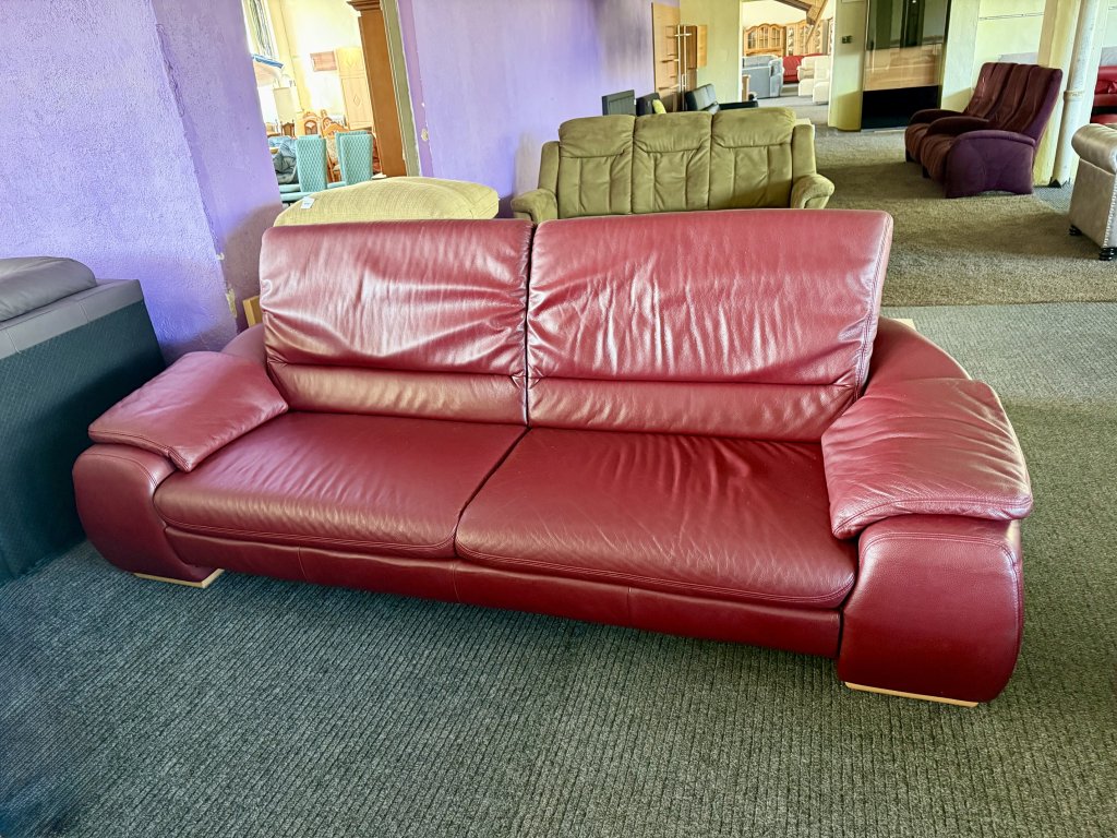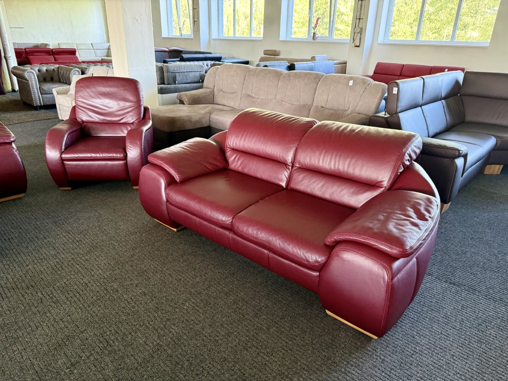 Tato zánovní celokožená sedací souprava 3+2+1 s taburetem kombinuje kvalitní provedení, pohodlí a funkční prvky. Vhodná pro prostorné interiéry.