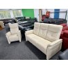 Křeslo je manuálně polohovací, s možností sklopení opěradla a vysunutí podnožníku. Trojmístná pohovka poskytuje dostatek prostoru k sezení pro tři osoby.