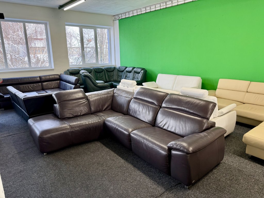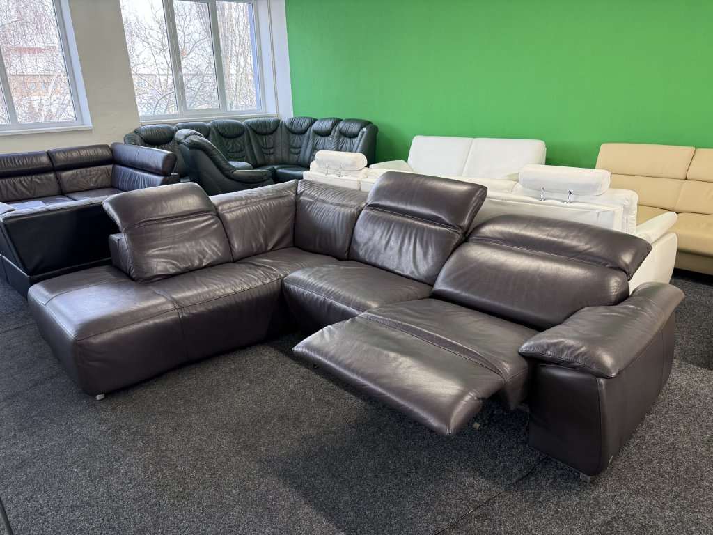 Sedací souprava rohová - el. polohovací - kožená - zánovní