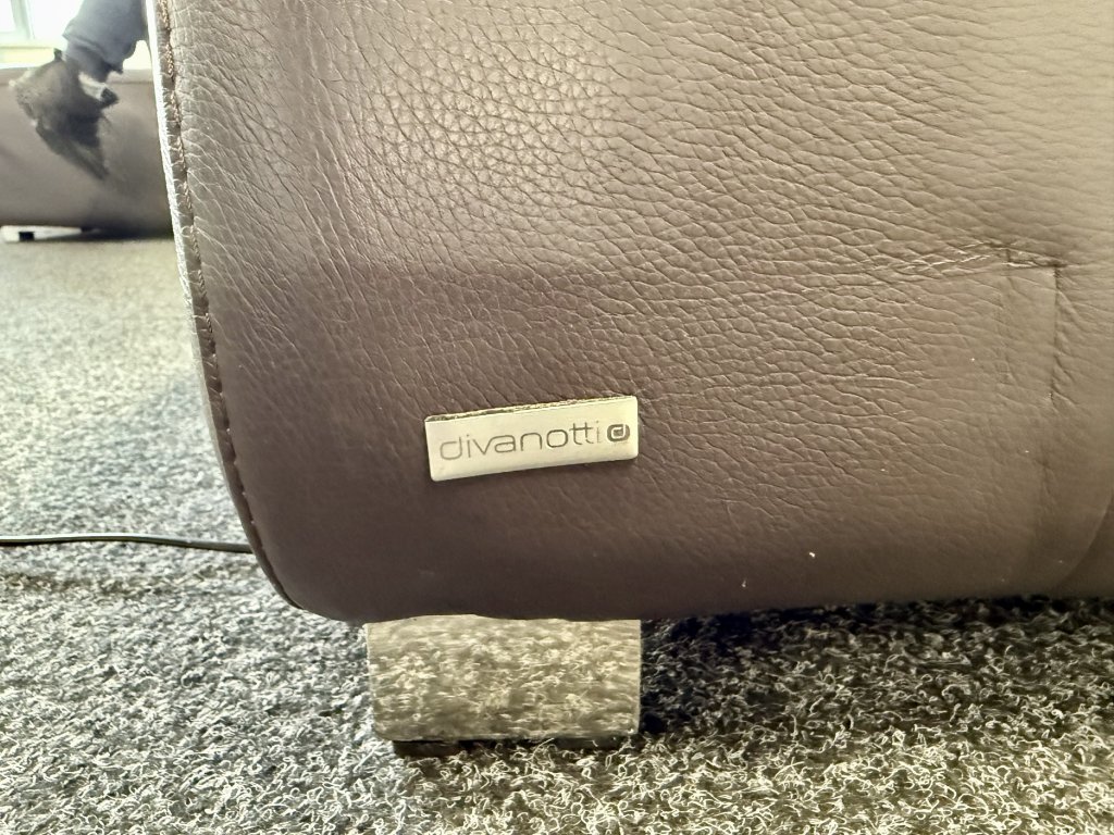 Rohová sedací souprava značky Divanotti je vyrobena z pravé kůže v tmavě hnědém odstínu. Souprava je celočalouněná a umožňuje umístění do prostoru. Součástí je elektricky polohovatelný sedák a polohovatelné opěrky hlavy. Stav zánovní.