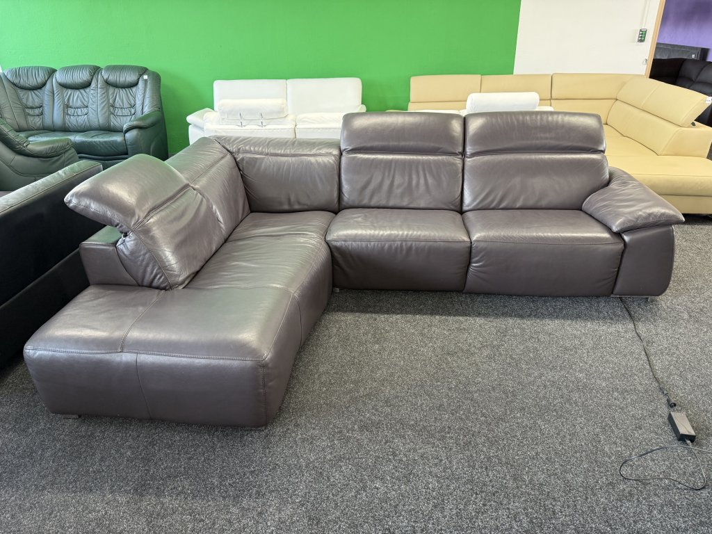 Rohová kožená sedací souprava s elektrickým polohováním a nastavitelnými opěrkami hlavy je určena pro každodenní sezení. Díky celočalouněnému provedení je vhodná jak do rohu místnosti, tak do otevřeného prostoru.