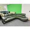 Moderní rohová sedací souprava značky Divanotti zaujme elegantním tvarem s plynulými liniemi a ladně zaobleným rohem. Čalounění z pravé kůže v tmavě zeleném odstínu dodává sedačce výrazný, ale zároveň decentní vzhled. Polohovací opěrky hlavy zajišťují komfortní oporu při sezení a dotvářejí moderní vzhled.
