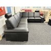 Zánovní kožená rohová sedací souprava v černém provedení nabízí komfortní sezení, kvalitní zpracování a nadčasový design vhodný do moderního interiéru.