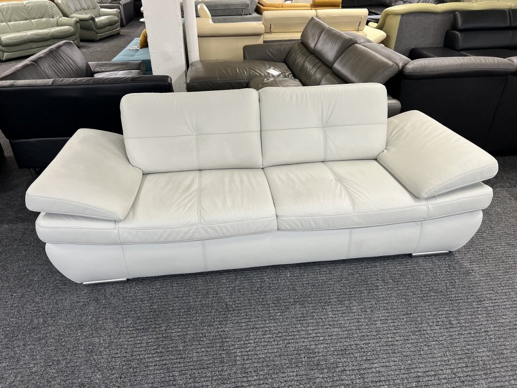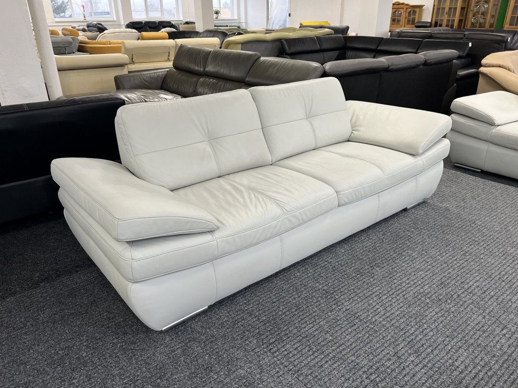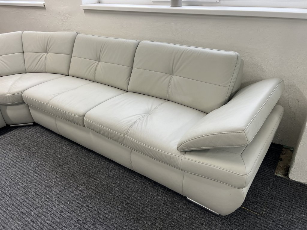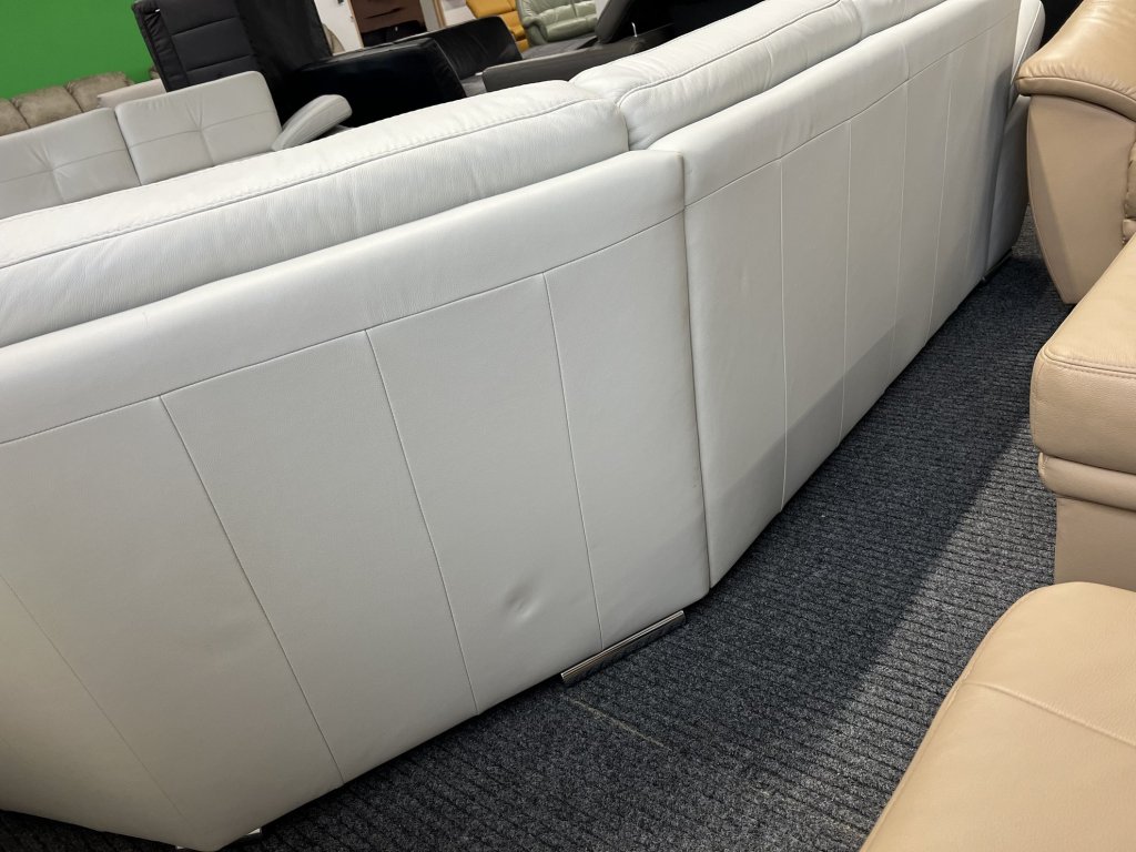 Rohová sedací souprava doplněná samostatnou pohovkou v koženém provedení. Sedačka je celočalouněná, vhodná pro umístění do prostoru. Područky jsou polohovací. Stav zánovní.
