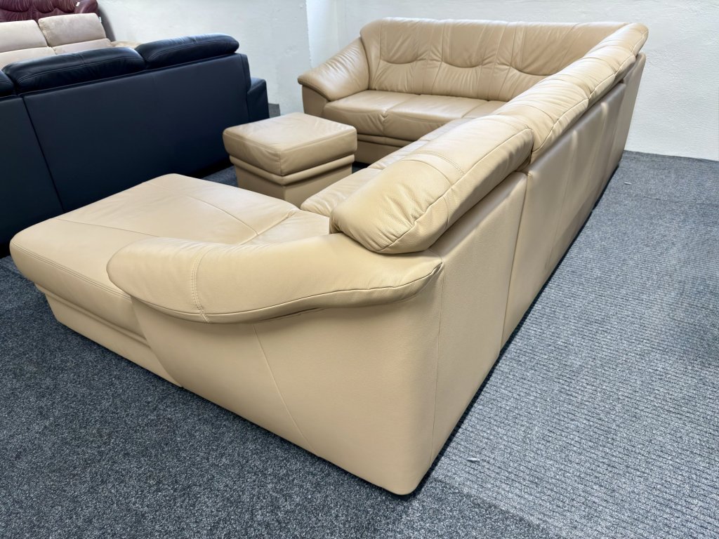 Sedací souprava tvaru U s taburetem - kožená – zánovní
