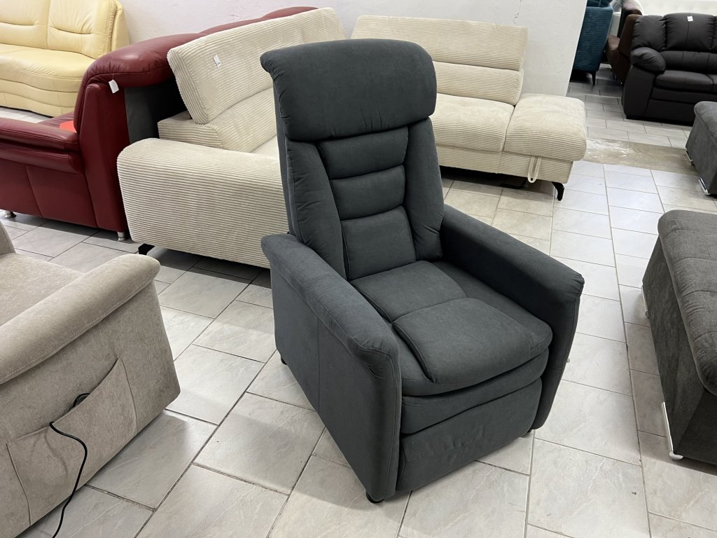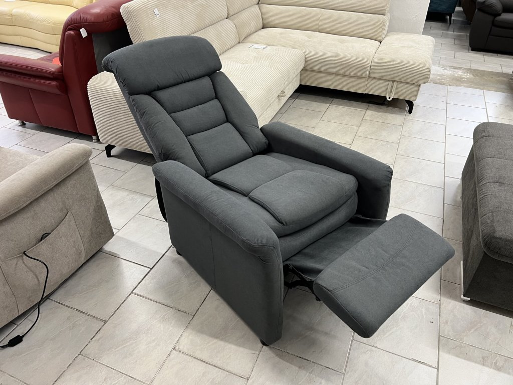 Manuálně polohovací křeslo je nepoužité, potažené látkou a provedené jako celočalouněné. Nabízí možnost manuálního polohování opěradla a podnožky. Mechanismus je ovládán tlakem těla.