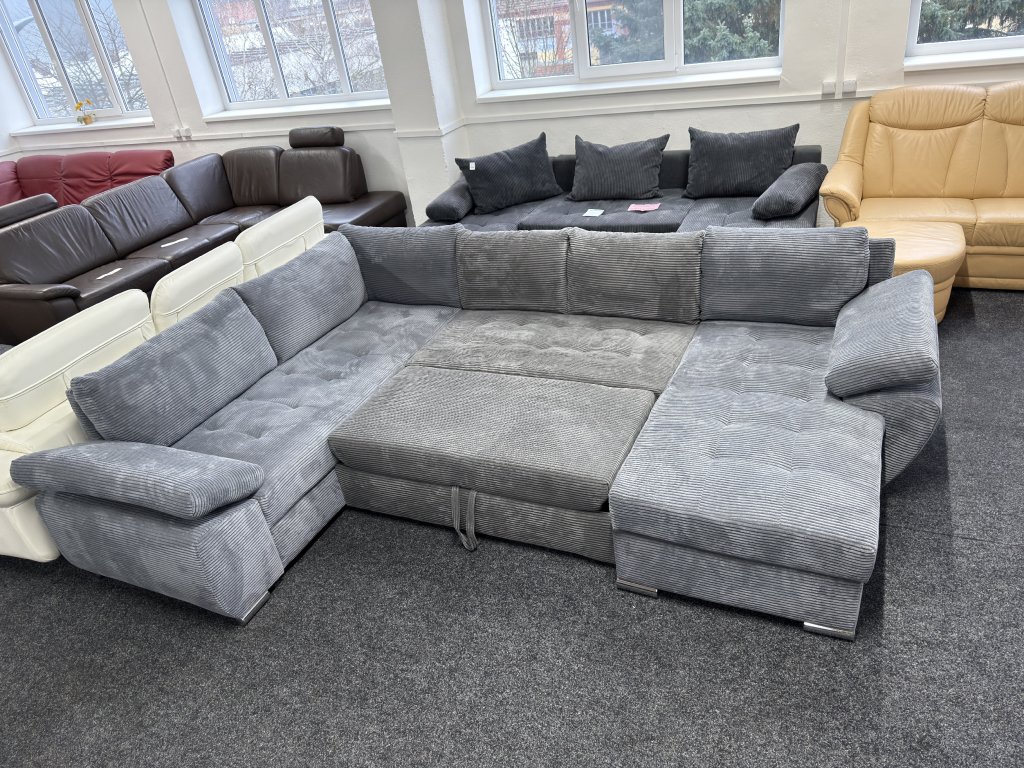 Sedací souprava do tvaru U, rozkládací, nepoužitá.