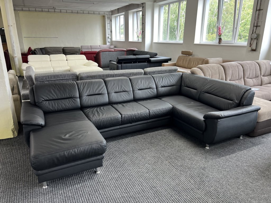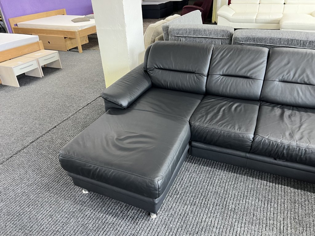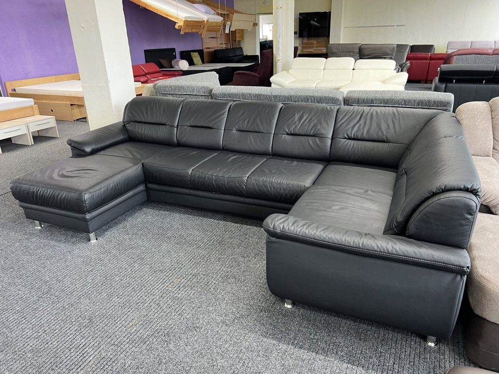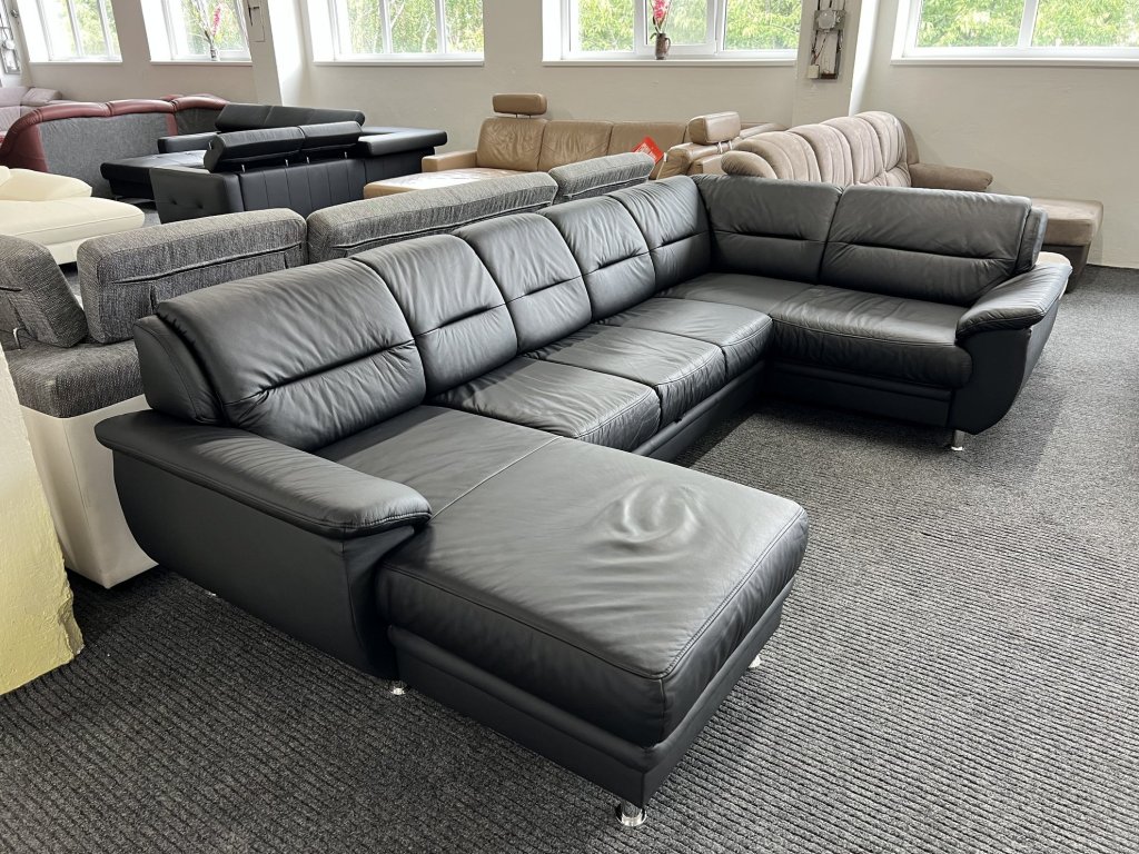 Sedací souprava ve tvaru U – celokožená, černá barva, NEPOUŽITÁ