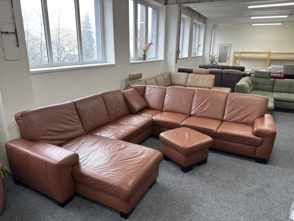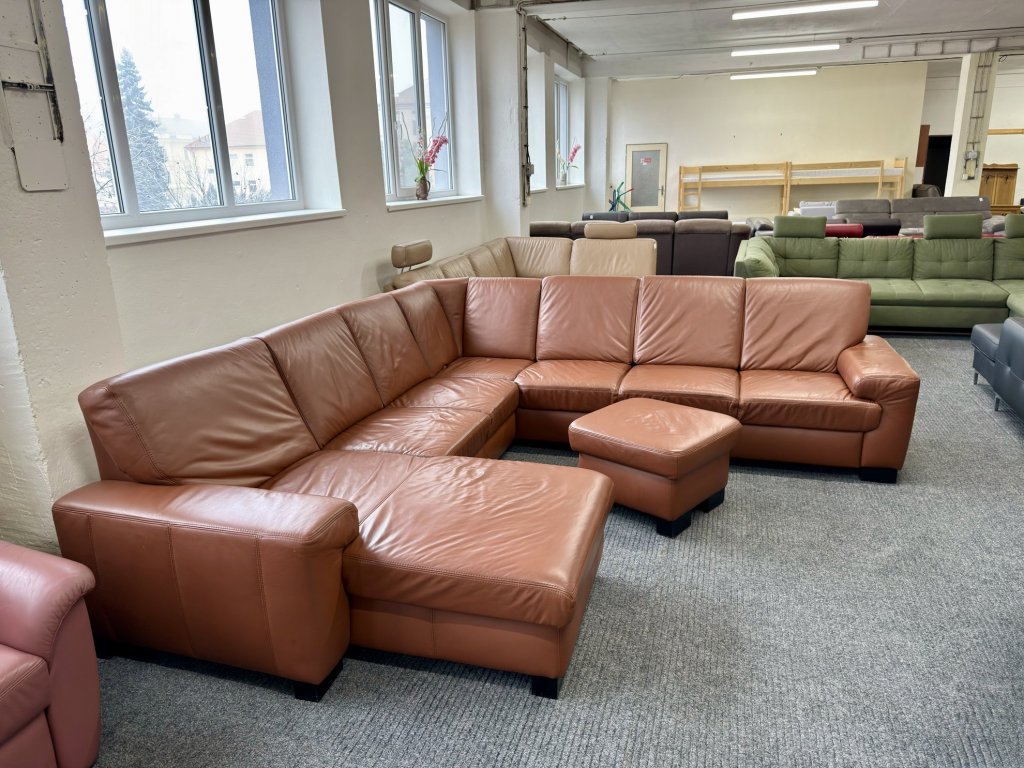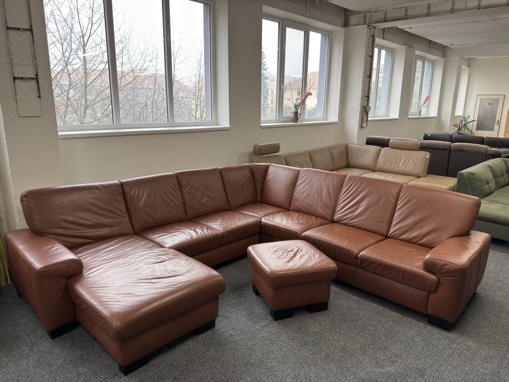 Sedací souprava tvaru U + taburet - kůže - zánovní