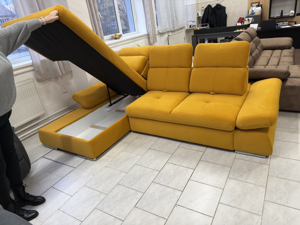 Sedací souprava rohová – rozkládací, s úložným prostorem, posuvná záda