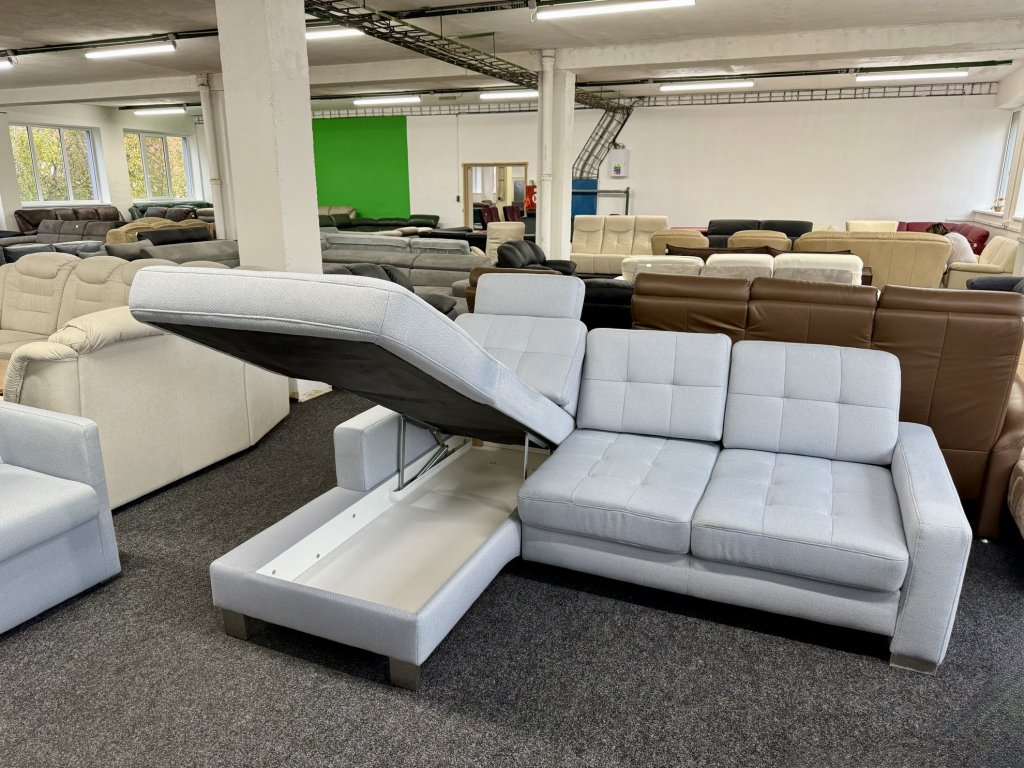 Rohová sedací souprava s křeslem kombinuje moderní vzhled, kvalitní čalounění a praktické funkce. Díky polohovacím opěrkám a úložnému prostoru poskytuje komfortní zázemí pro každodenní použití.