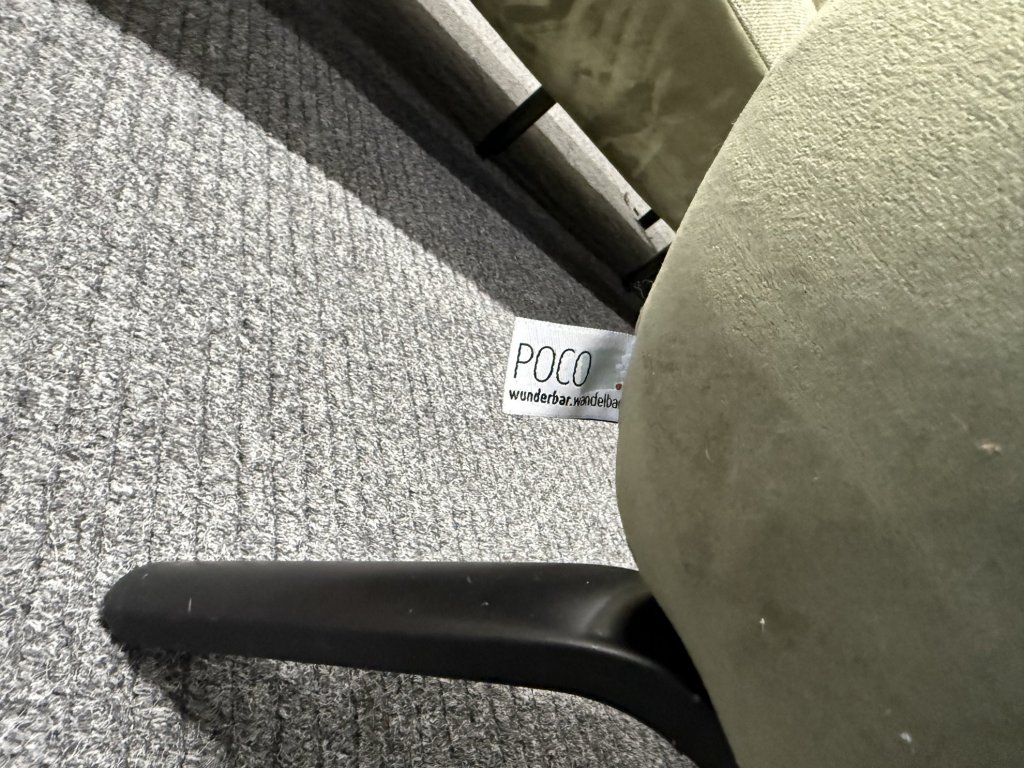 Látkový potah je použit na všech viditelných stranách včetně zadní části. Konstrukce je tvořena rámem doplněným o kovové nohy s úzkým profilem.