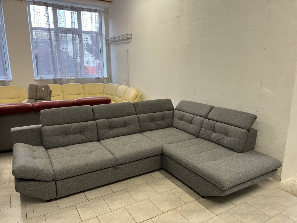 Rohová sedací souprava v látkovém provedení je celočalouněná a nabízí možnost rozložení pro příležitostné spaní. Součástí jsou polohovací opěrky hlavy a nastavitelná područka. Sedačka je nepoužitá.