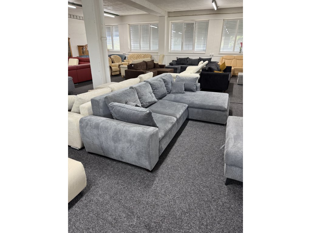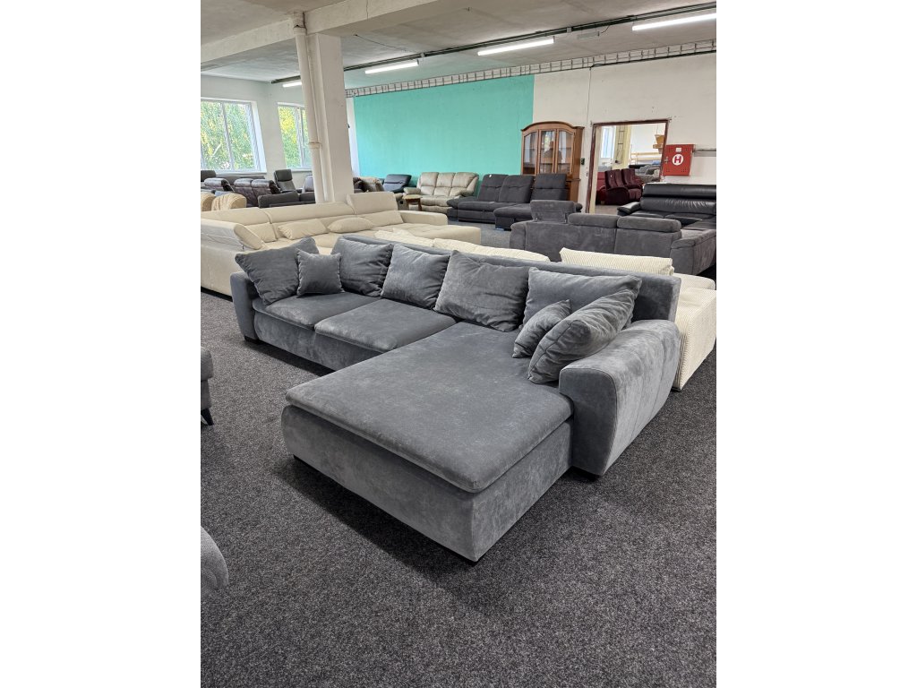 Rohová sedací souprava v celočalouněném provedení s šedým látkovým potahem nabízí kombinaci prostorného sezení a praktických funkcí. Díky rozkládání a úložnému prostoru je vhodná jak pro každodenní používání, tak i pro příležitostné spaní. Provedení je nepoužité.