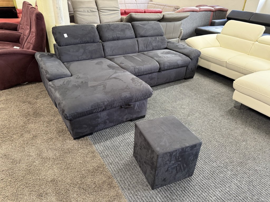 Rohová sedací souprava s taburetem – látková, rozkládací, s úložným prostorem, EV 5792