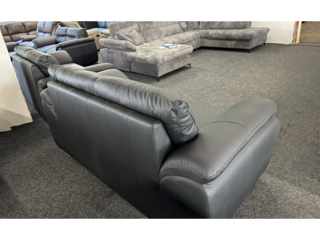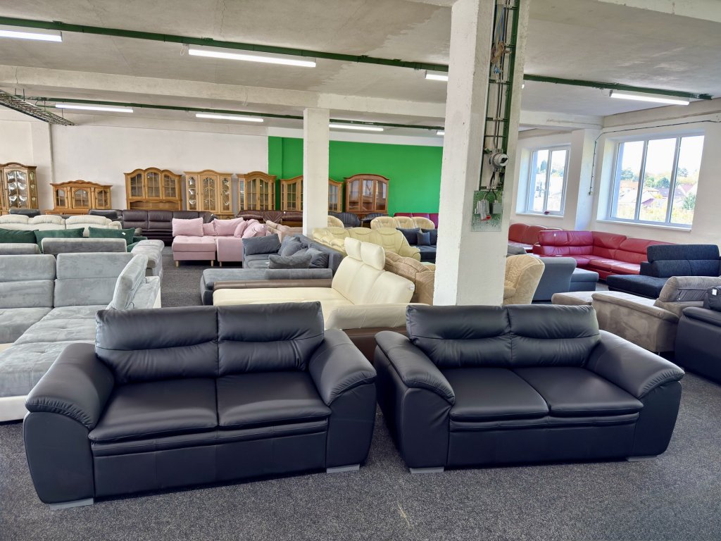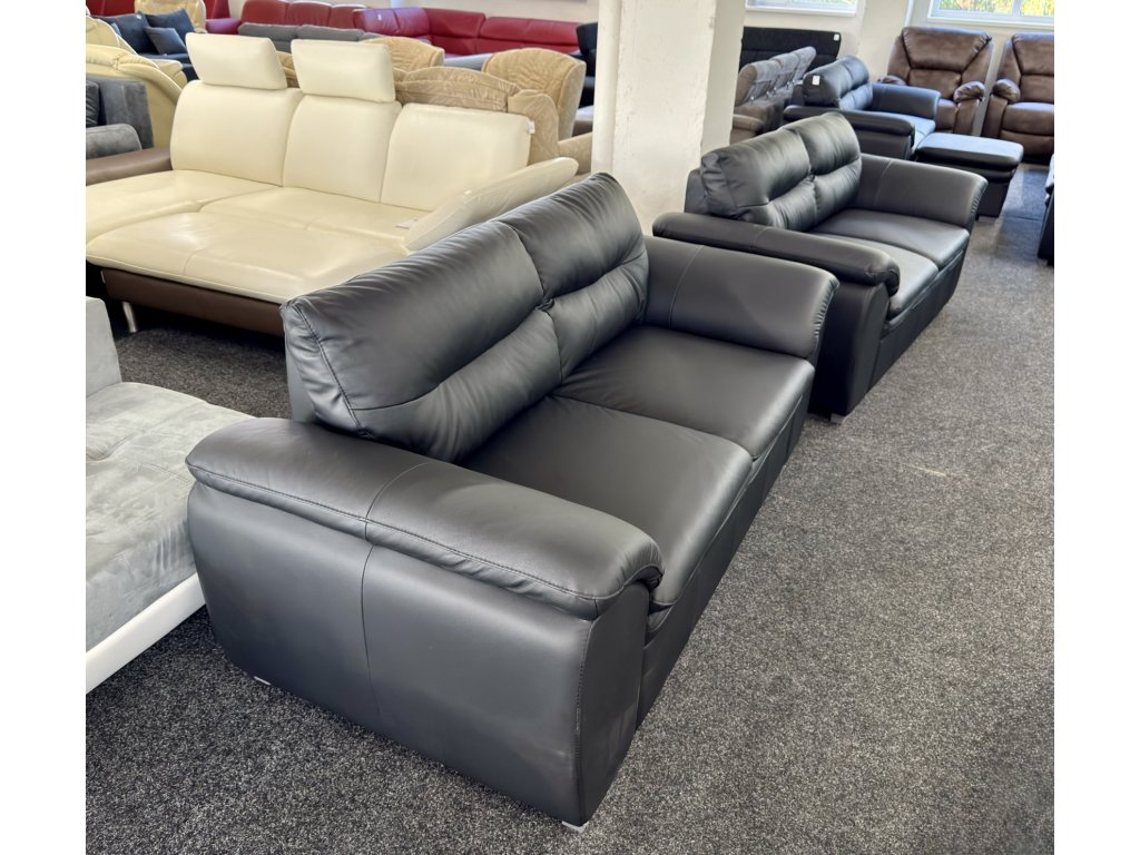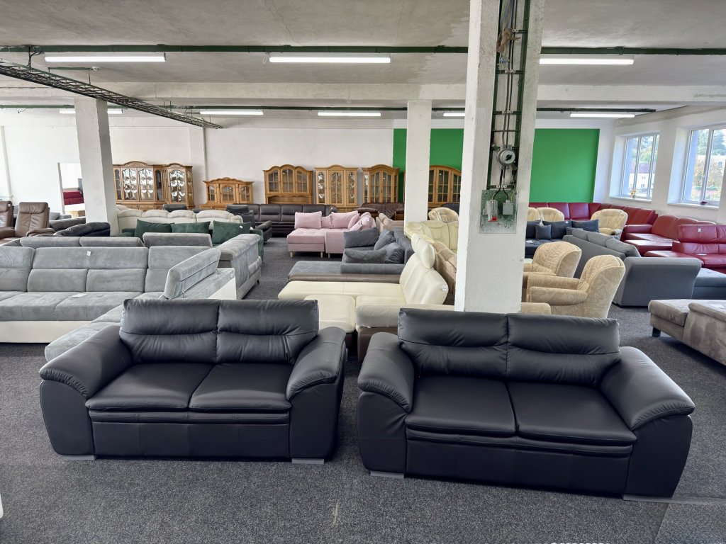 Sestava dvou pohovek v černé barvě s potahem z pravé kůže. Obě části jsou celočalouněné, takže je možné je umístit volně v prostoru. Souprava je nepoužitá.