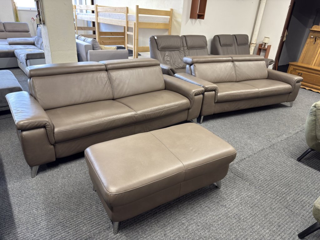 Souprava je určena pro uživatele, kteří hledají dvě samostatné pohovky s koženým povrchem a možností doplnění o taburet s úložným prostorem.
