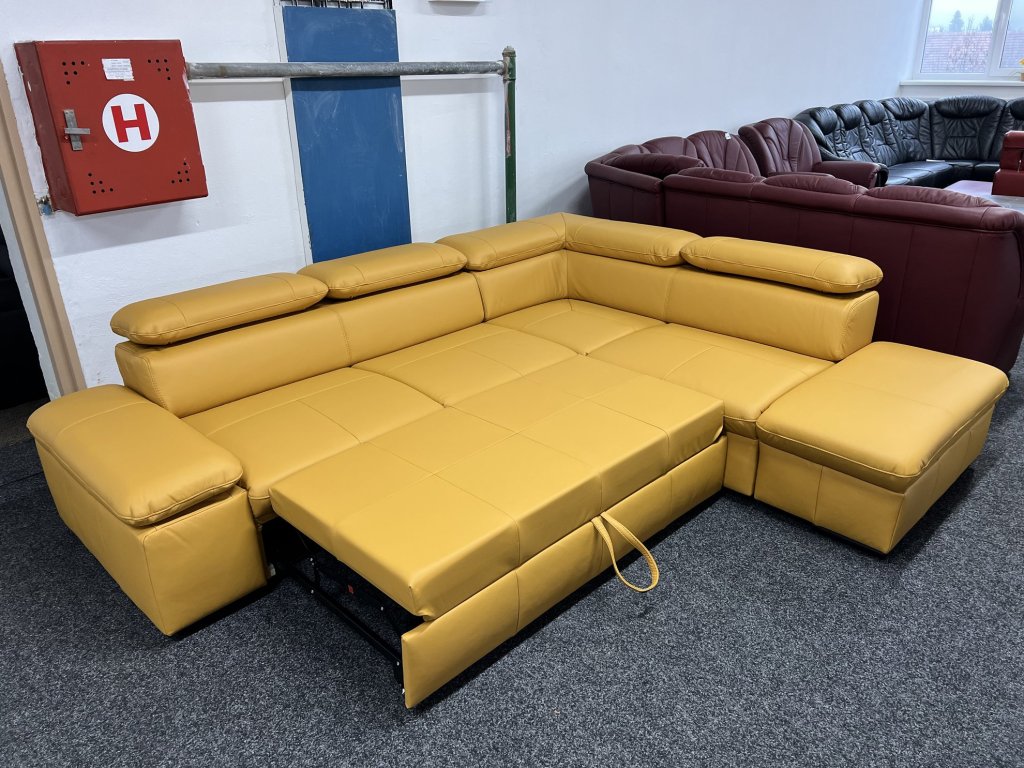 Sedací souprava rohová - rozkládací - kůže - NEPOUŽITÉ