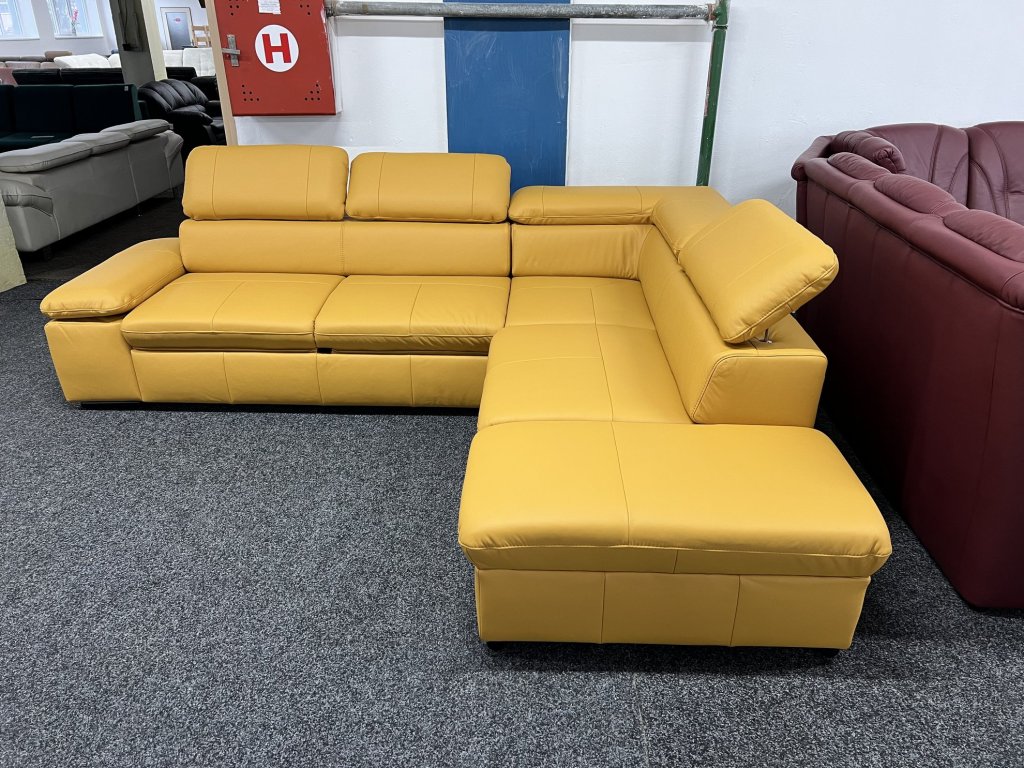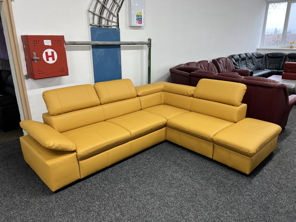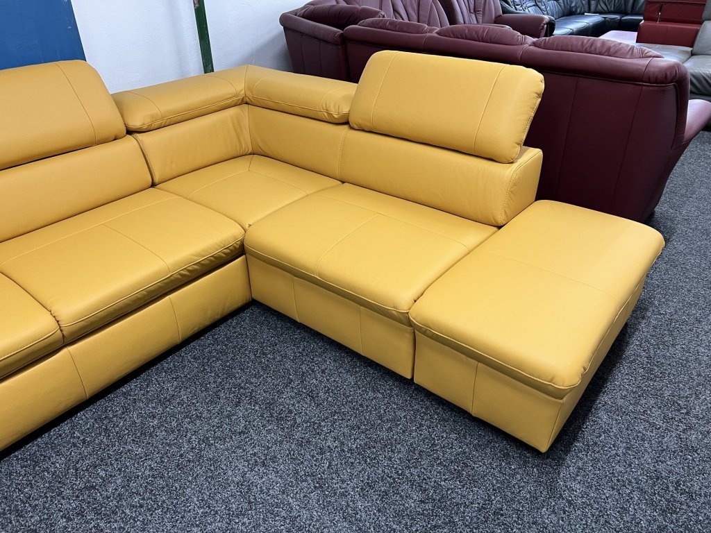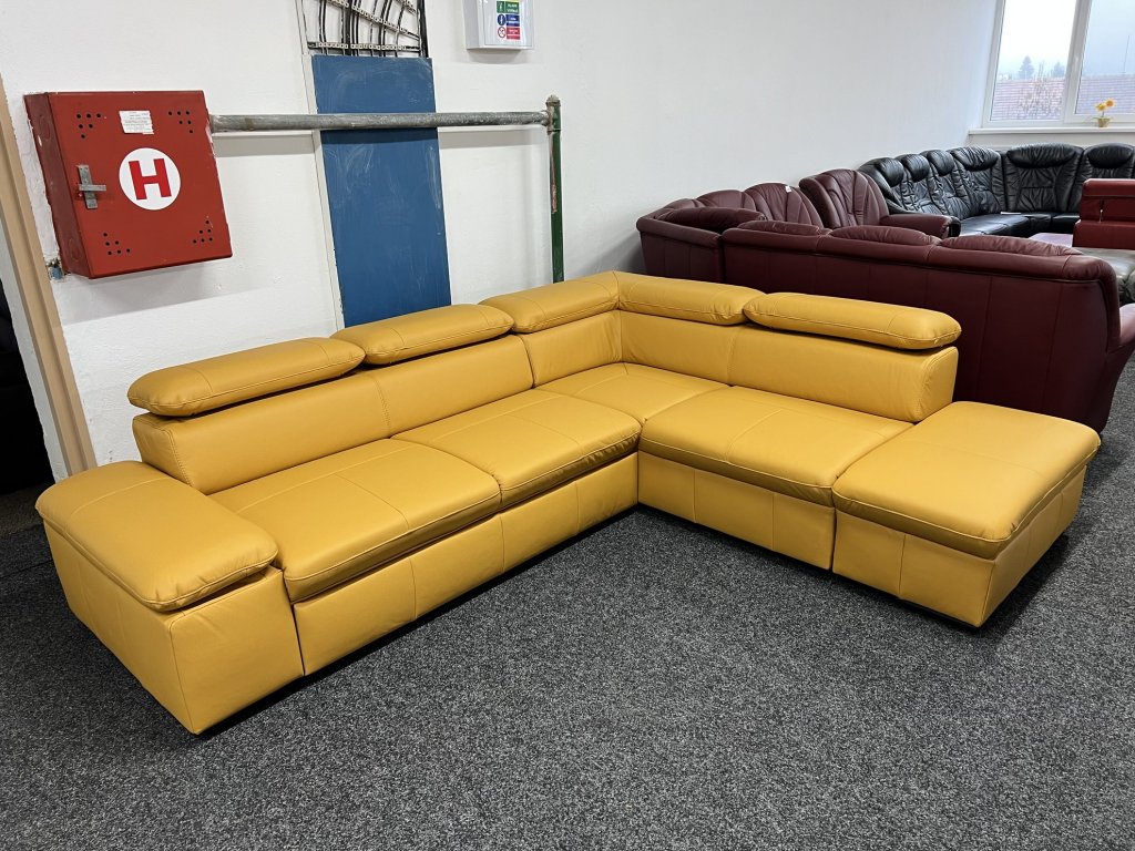 Rohová kožená sedací souprava s rozkládací funkcí a polohovacími prvky je určena pro každodenní sezení i příležitostné spaní.