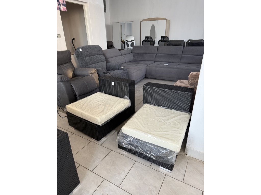 Dvojice ratanových křesel z umělého ratanu s polstrováním. Vhodné pro venkovní i vnitřní využití.